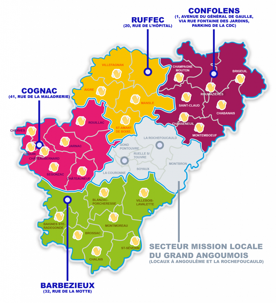 La Mission Locale Arc Charente agit sur presque l’ensemble du territoire Charentais. Selon la carte, découvre nos permanences les plus proches de chez toi et découvre quelle antenne prendra en charge ton dossier.